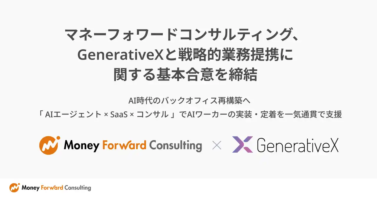 株式会社マネーフォワードのグループ会社であるマネーフォワードコンサルティング株式会社は、株式会社GenerativeXと戦略的業務提携に関する基本合意書を締結しました。 |