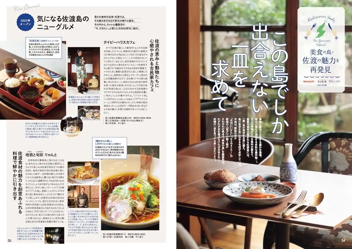 各誌それぞれが10ページを使っての特集で、選りすぐりのレストランや島の新しいグルメを紹介。取材・掲載しているお店や観光スポット、おすすめの体験はすべて異なり、3冊すべてを読むことで今の佐渡の最新の食のトレンドや、旅の目的にしてほしいレストランを知ることができます。 |