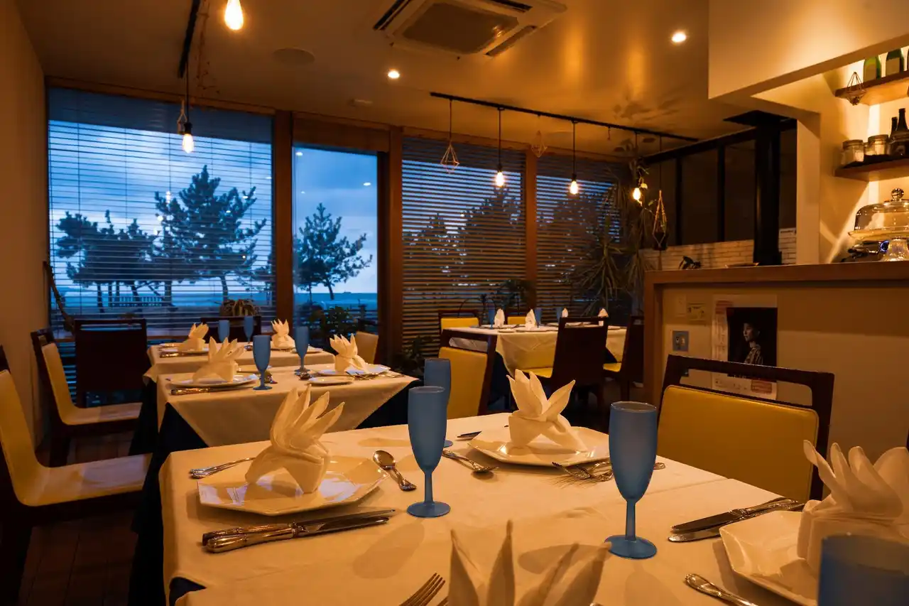 日本最大級の若手料理人を発掘するコンペティション『RED U-35 2025』で最高賞の「レッドエッグ」を獲得した須藤良隆シェフのフレンチレストラン、La Plage(ラ・プラージュ)をはじめ、島の豊かな食材に魅了された料理人が移住し、お店を構えている。 |