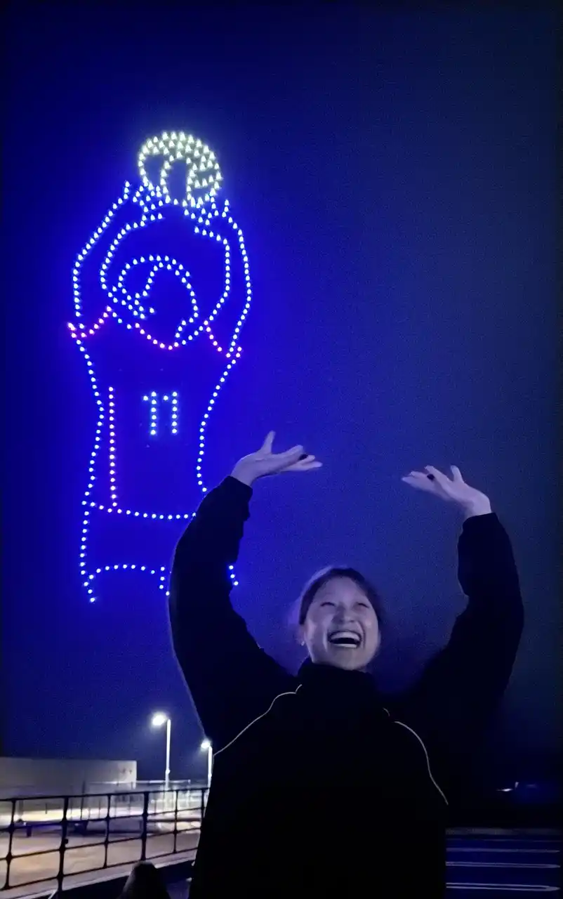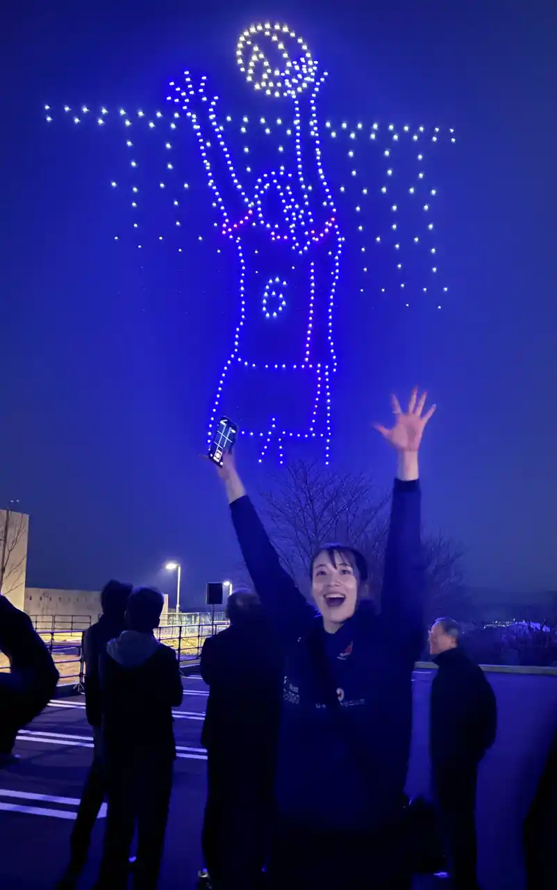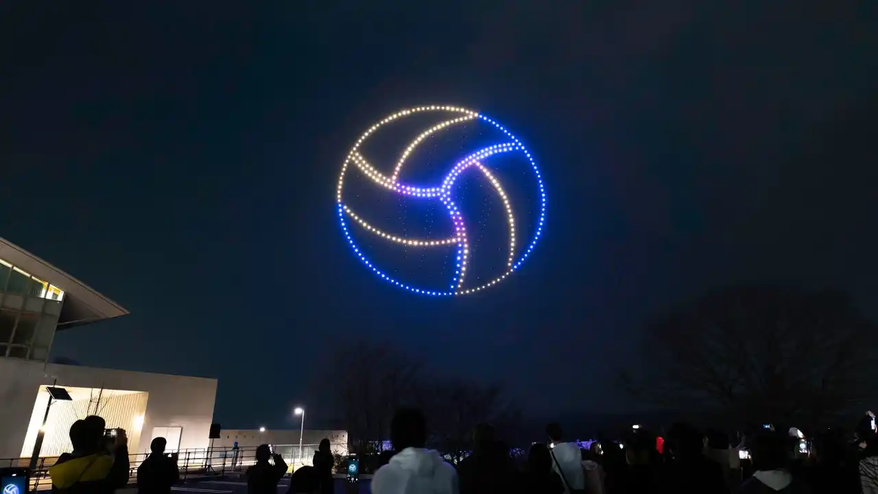 試合終了後、会場上空に多数のドローンが舞い上がり、チームロゴやシーズンを象徴するモチーフを光で描き、プロバレーボールの公式戦と連動した屋外ドローンショーは国内初の取り組みであり、スポーツと最先端エンタテインメントを融合させた新しい観戦体験となりました。 |