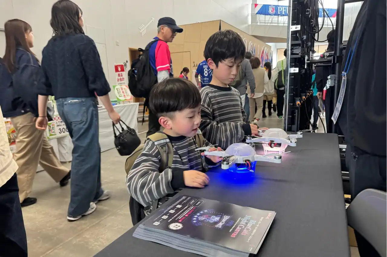 本企画は、ホーム最終節のプレゼンツマッチスポンサーであり、ブルーキャッツ唯一のエンターテインメントスポンサーである 株式会社ドローンショー・ジャパンと連携し、シーズンを通してご声援いただいたファンや地域の皆さまへの感謝を込めて実施する特別演出で行われ、2日間合わせて約1,100名の方にお越しいただきました。 |