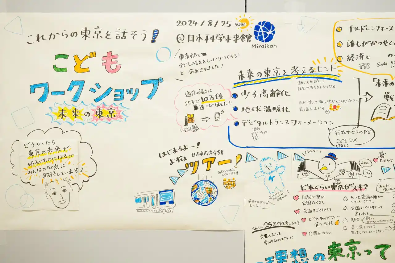 2024年度に実施した生活文化スポーツ局「東京2025世界陸上」ワークショップでは、子どもの声がバトンプロジェクト・こども記者・応援メッセージ企画として実現。大会は主催者から「こどもに夢を届ける大会」として表彰されました。政策企画局「未来の東京」の意見は「2050東京戦略」に反映。参加した子どもたちの98.1%が「参加してよかった」「言いたい意見が言えた」と回答しています。 |