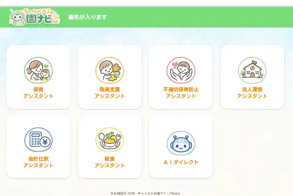 株式会社チャイルド社(本社:東京都杉並区、代表取締役:柴田 洋平)および株式会社AI研究所(本社:東京都杉並区、代表取締役:柴田 豊幸)は、保育園・認定こども園・幼稚園に向けた新しいAI支援サービスとして、「チャイルドAIアシスタントハウス」を2026年3月1日、「チャイルドAI園ナビ」を2026年5月1日(予定)より発売いたします。 |
