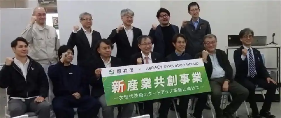 優れた技術力を持つ福井の地元企業と革新的なアイデアや研究開発力を持つ県外のスタートアップ企業や起業を志す研究者をマッチングさせることで新産業を生み出す福井県坂井市の「新産業共創事業」の初年度成果発表会が3月17日、同市春江町の拠点施設「SAKAI WEAVE(サカイ・ウイーブ)で行われた。この事業の坂井市のパートナー企業「ReGACY Innovation Group(レガシー・イノベーション・グループ=本社・東京、以下レガシー社)」が、全国から誘致した県外3社2大学の5事業者が、昨年夏以来の約7カ月に渡って取り組んだ実証実験や試作、構想などを報告した。 |