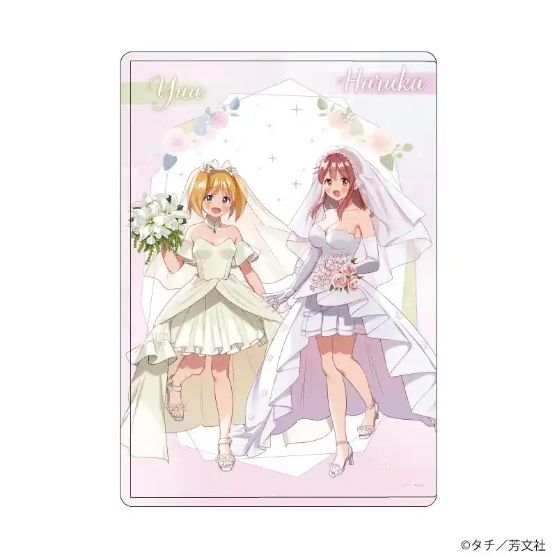 | 新作グッズには公式イラストに加えて、春香&優がウェディングドレスをまとった描き下ろしイラストを使用。 | |||||||||