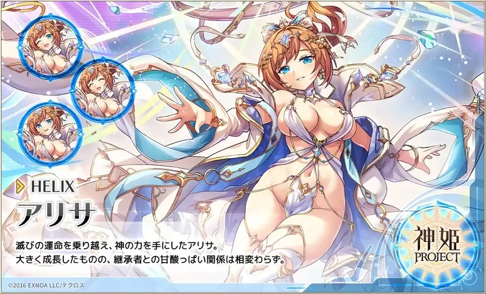 合同会社EXNOA(本社:東京都港区、CEO:東條 寛、URL:https://games.dmm.com/)が運営するDMM GAMESにおいて『神姫PROJECT』は、10周年を記念して新神姫「テトラ」と「アリサ」が新衣装で登場する事を発表した。さらに毎日最高100連のルーレットガチャも開催される。 |