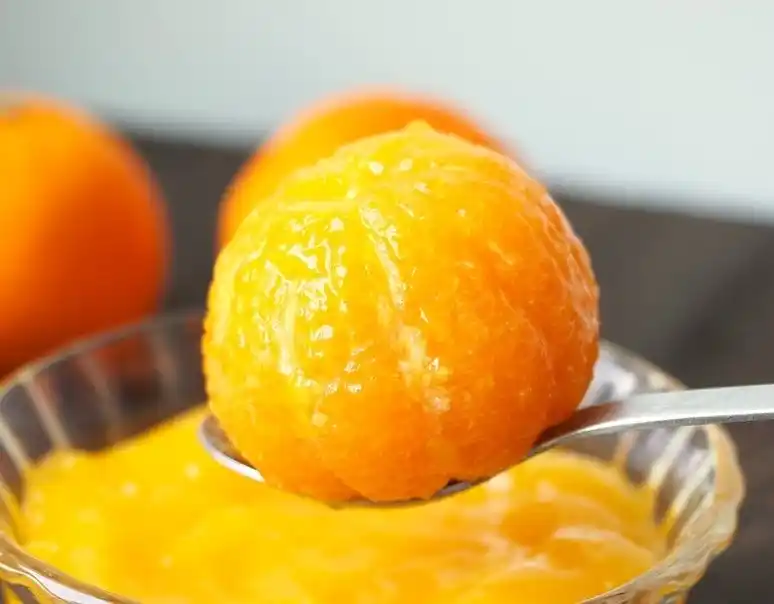 果汁、旨味、香り、それぞれの要素が重なり合い、ひと口で完熟みかんを頬張ったかのような味わいが広がります。濃厚でありながら、後味は軽やか。食後にも楽しめるデザートです。 |