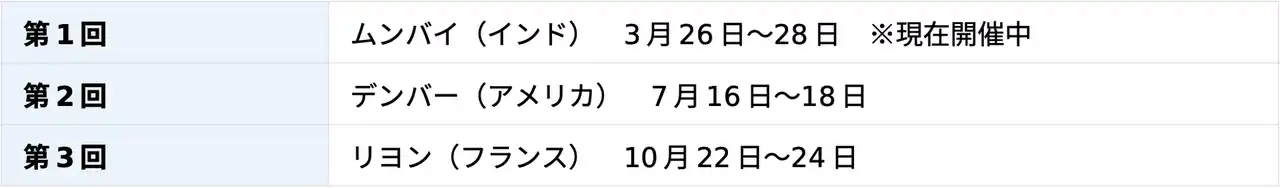 2026 年は世界 3 都市で開催が予定されています。 |