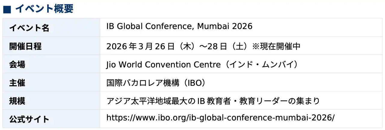 ■ 2026 年の IB Global Conference 開催スケジュール |