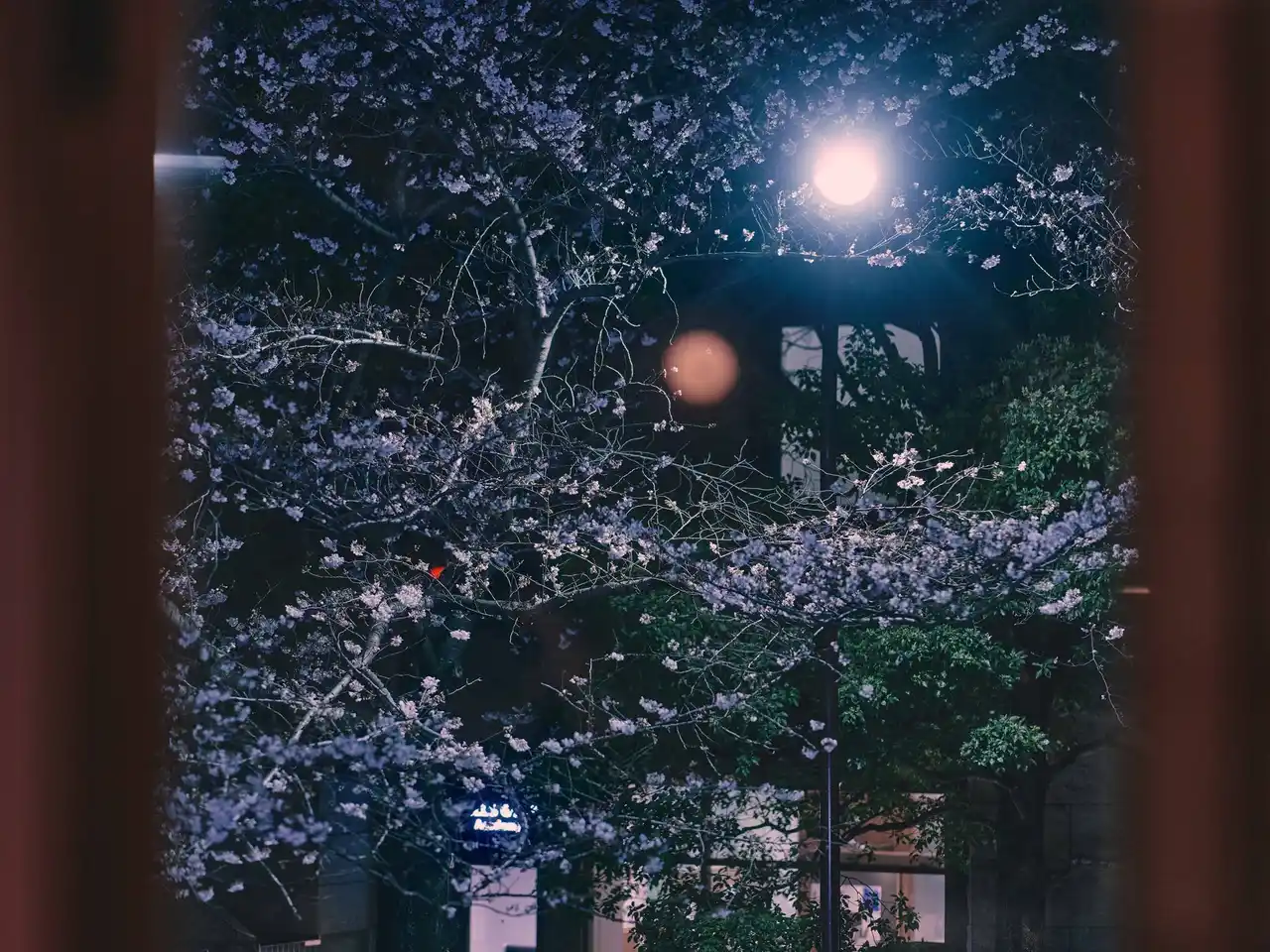 窓からの景色(夜桜) |