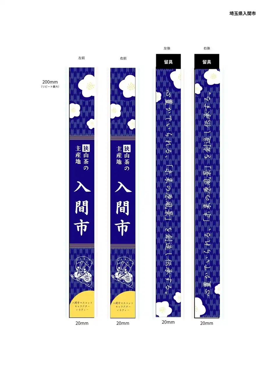 狭山茶の産地である入間市としては、通常なら茶を連想させる「緑色」を選ぶことが多いのですが、今回は「日本の伝統を世界にも知ってほしい」という同市の強い思いから、あえて緑色を外し、日本の伝統色である「藍色」を採用しました。 |