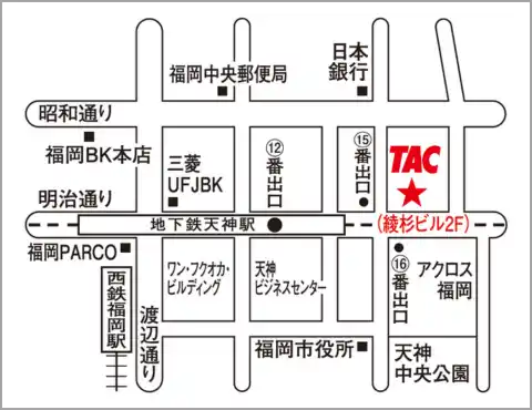 〒810-0001 福岡市中央区天神1-15-6 綾杉ビル2F ※地下鉄天神駅東口改札より15.16.番出口徒歩1分