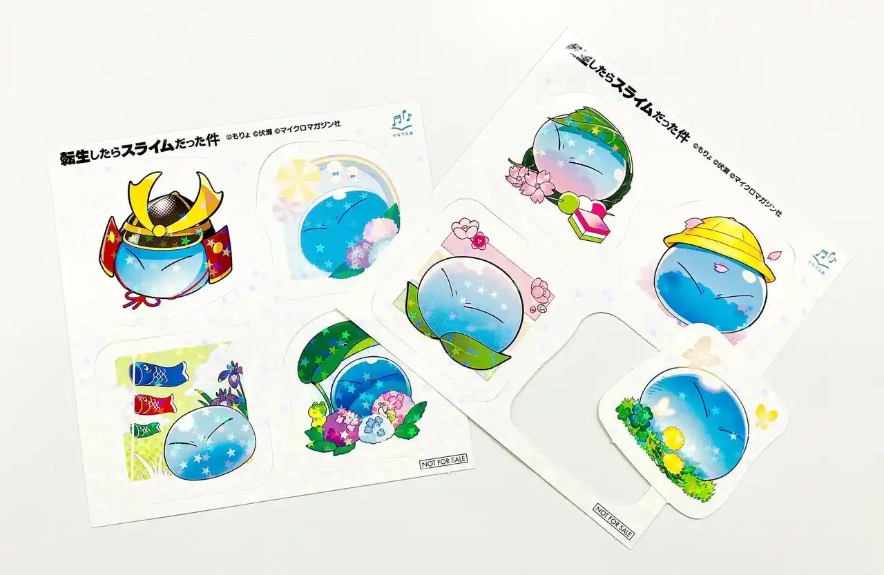 かなで文庫「転生したらスライムだった件」シリーズから、1冊お買い上げごとにホログラムステッカーシート(非売品・全2種)から1枚プレゼント!