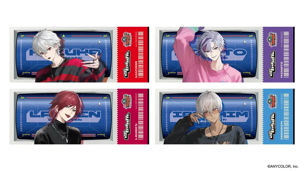 ※せめ4(葛葉/不破湊/ローレン・イロアス/イブラヒム)グッズをご購入の方には3,000円(税込)毎に「チケット風カード せめよん ver.(全4種)」を、VOLTACTIONグッズをご購入の方には3,000円(税込)毎に「チケット風カード VOLTACTION ver.(全4種)」をお渡しいたします。 |
