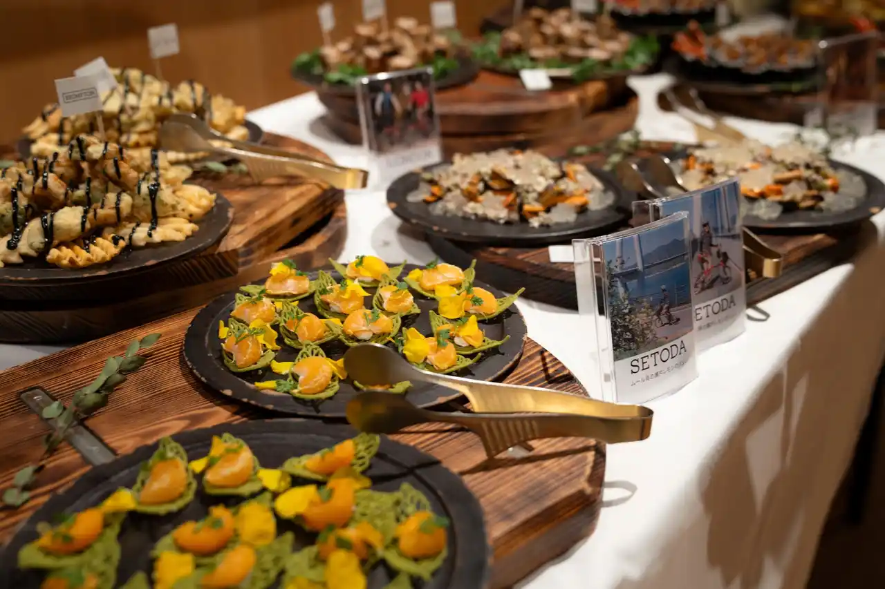 夕刻からは、オーナーおよびメディアを招いたBrompton Tokyo 1周年パーティーを開催。 ケータリングには、これまでBromptonがイベントを開催してきた各地の名物料理を用意し、会場にはBROMPTON JAPAN公式Instagramの投稿画像を展示。ブランドの歩みと“旅”の記憶を視覚的に振り返る空間演出を行いました。 |