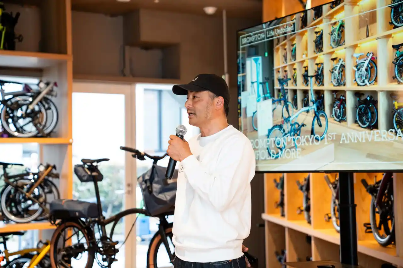 さらに、Brompton Tokyo ストアマネージャー 松原武彦 は、神宮前という都市とカルチャーが交差するロケーションを活かし、試乗体験の拡充やコミュニティイベントの強化を通じて、店舗を“体験の拠点”へと進化させていく今後の施策を紹介しました。 |