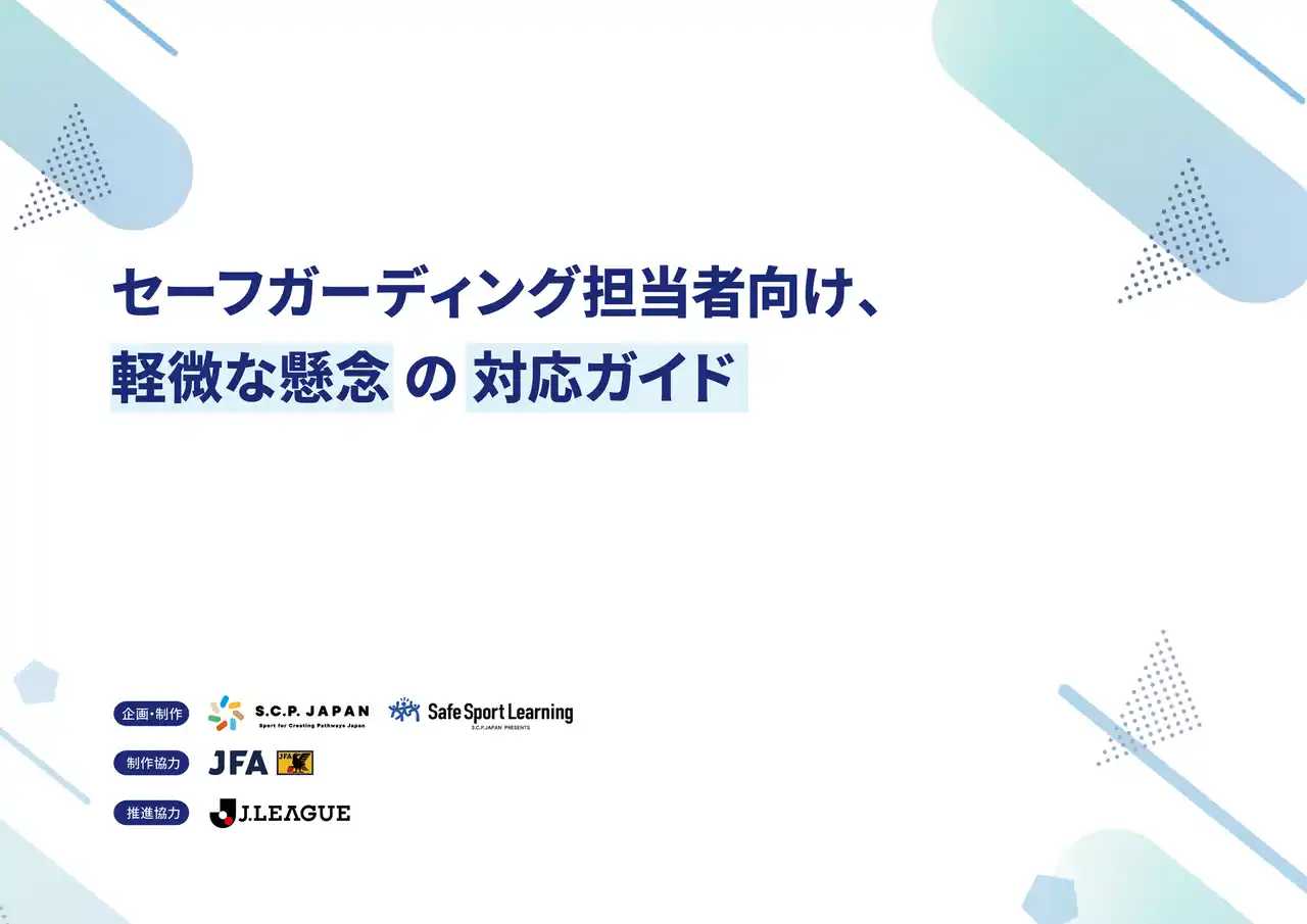 今回この取り組みの一環として、S.C.P. Japanは公益財団法人日本サッカー協会(以下、JFA)の協力のもと、セーフガーディングを学ぶためのeラーニング教材と実践ガイドを作成しました。さらに、公益社団法人日本プロサッカーリーグ(以下、Jリーグ)には、これらの活用において推進協力として参画いただいています。 |