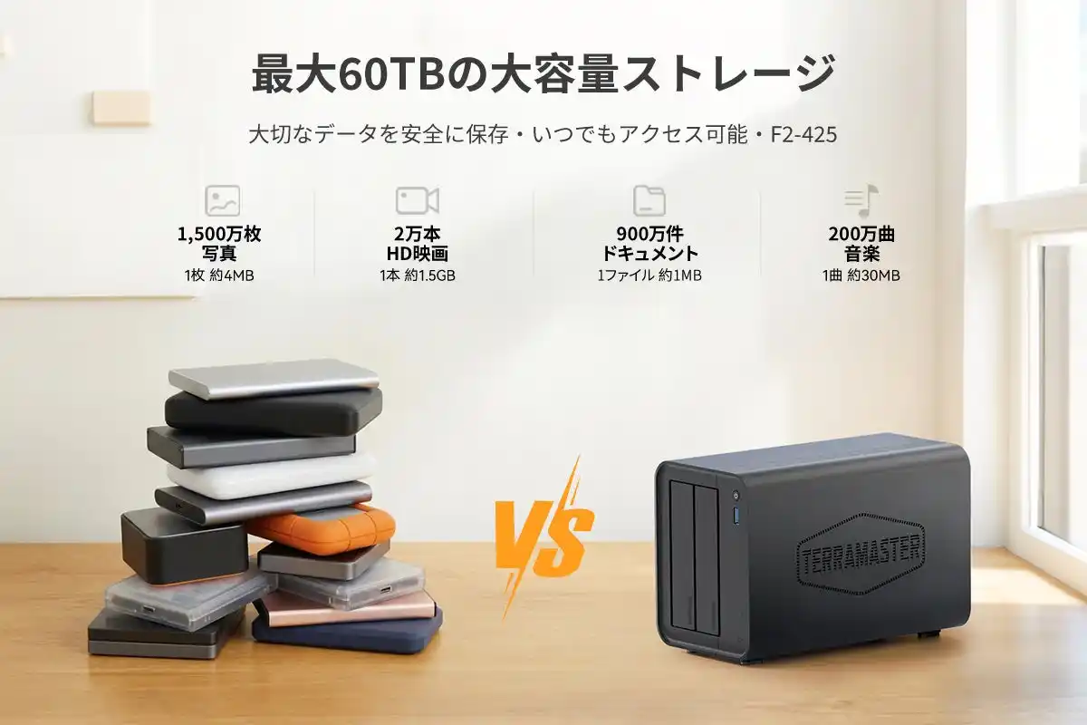 本Amazon新生活セールにおいて、TerraMasterはNAS、DAS、外付けSSDを含む幅広いストレージ製品ラインアップを通じて、多様なデータ管理ニーズに対応します。 |