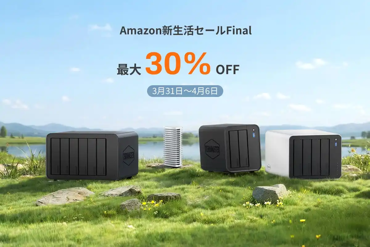 TerraMasterは、2026年3月31日から4月6日まで開催されるAmazon「新生活セール」Finalに参加し、NAS、DAS、外付けSSDなどのストレージ製品を対象に、最大30%の割引およびポイント還元キャンペーンを実施します。 |