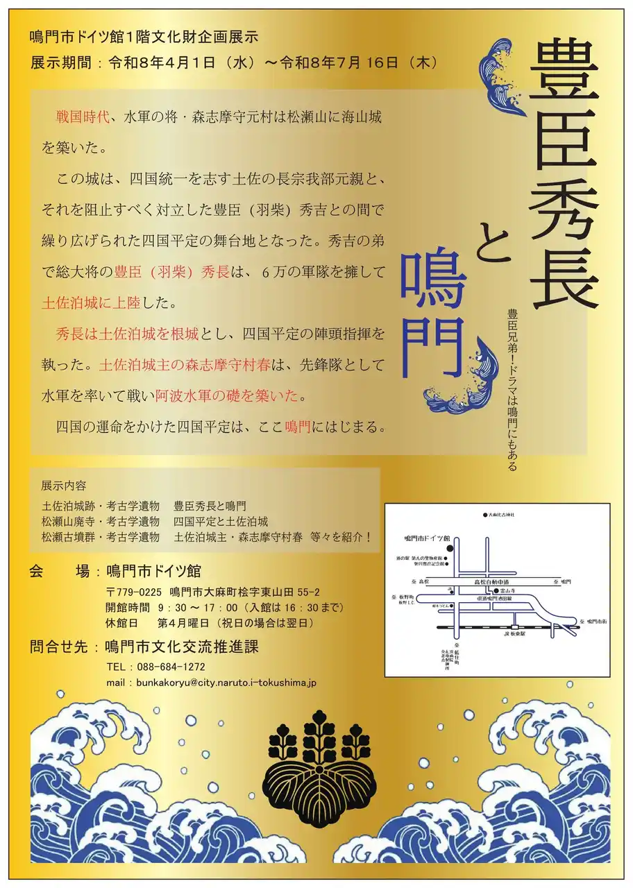 【鳴門市役所】 鳴門市ドイツ館1階 文化財企画展示「豊臣秀長と鳴門 豊臣兄弟!ドラマは鳴門にもある」