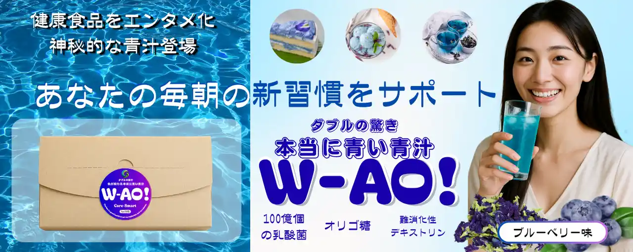 | 合同会社Care-Smartは、健康習慣の挫折(三日坊主)を防ぐための全く新しいアプローチとして、バタフライピーを使用した『本当に青い青汁W-AO!』を新たに発売いたします。 | ||||||||||||||
