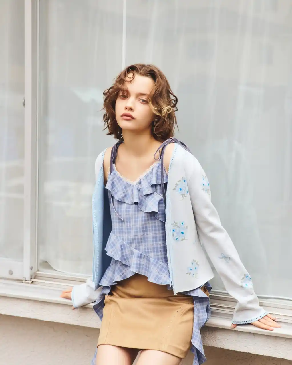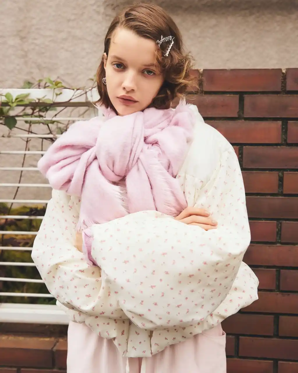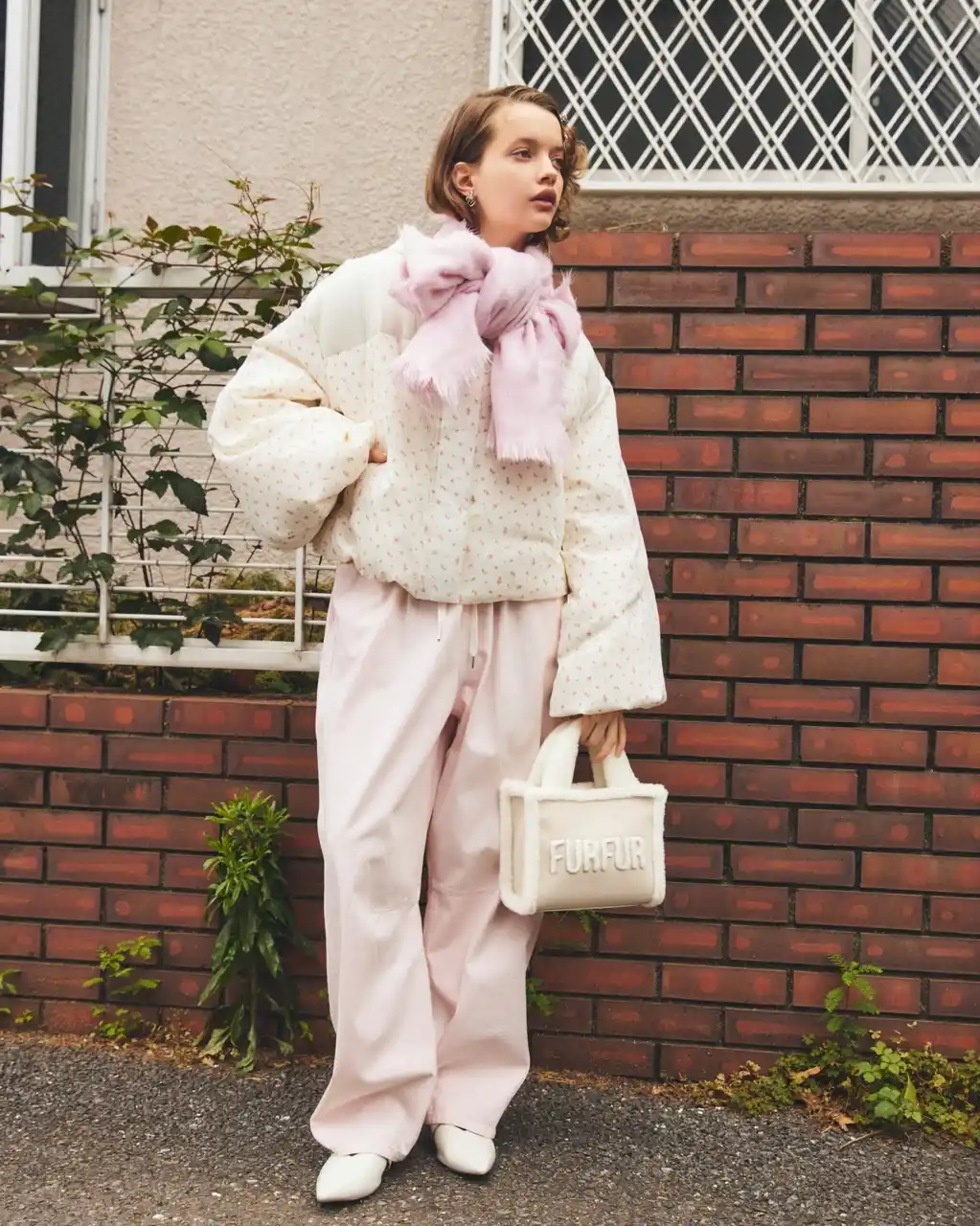 花柄やパステルカラーを合わせたスタイルで、ロマンティックに昇華。 |