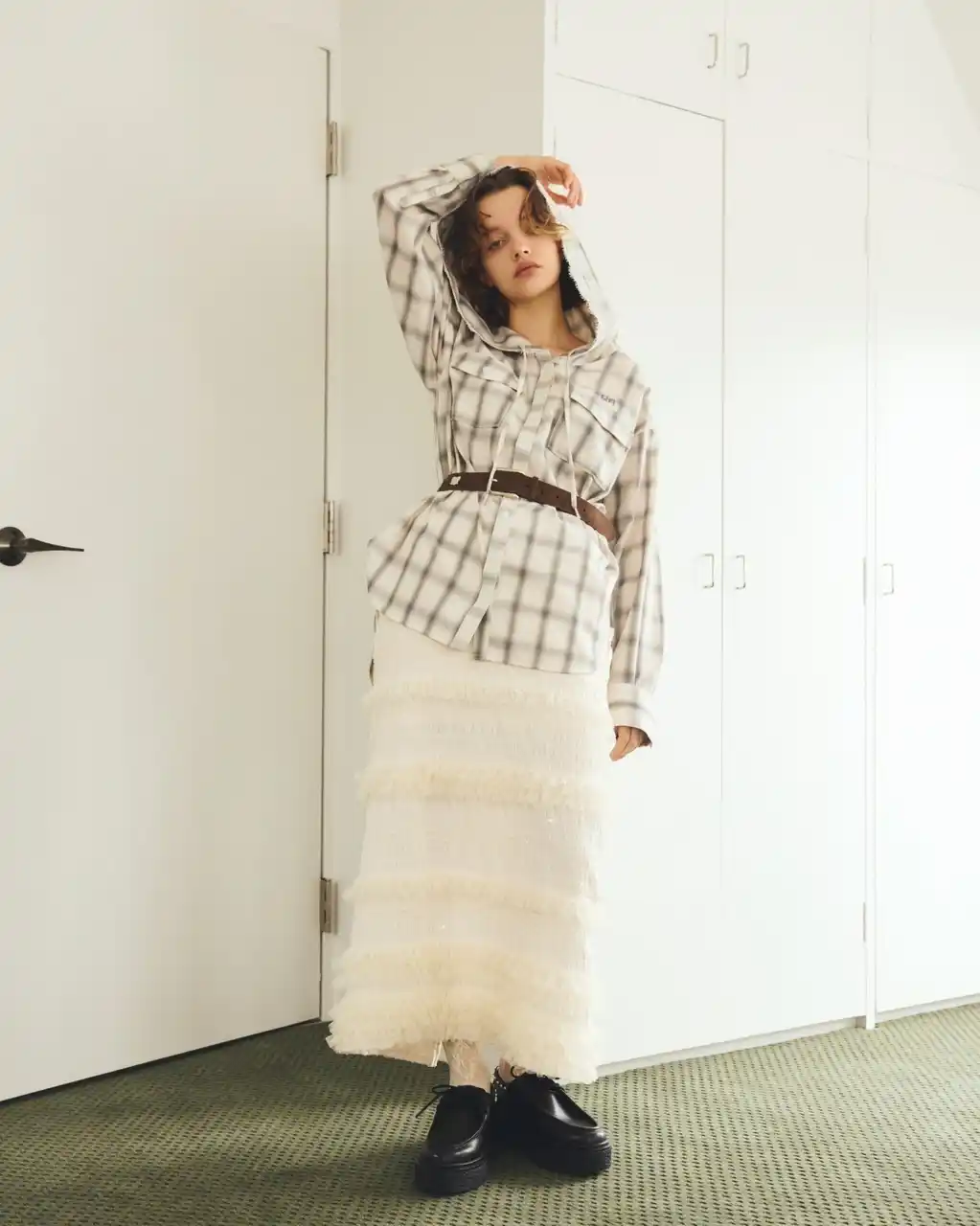 フーディー型のネルシャツやシャツをドッキングさせたスカート、ビスチェ付きシャツなど、 |