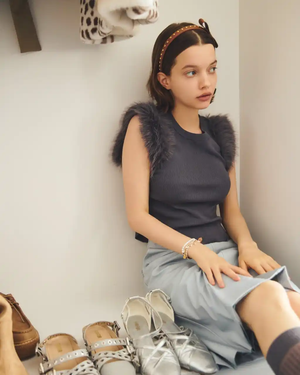 まだまだ暑い秋の始まりには、ファーアイテムをポイントで取り入れて気分を先取りするのもおすすめ。 |