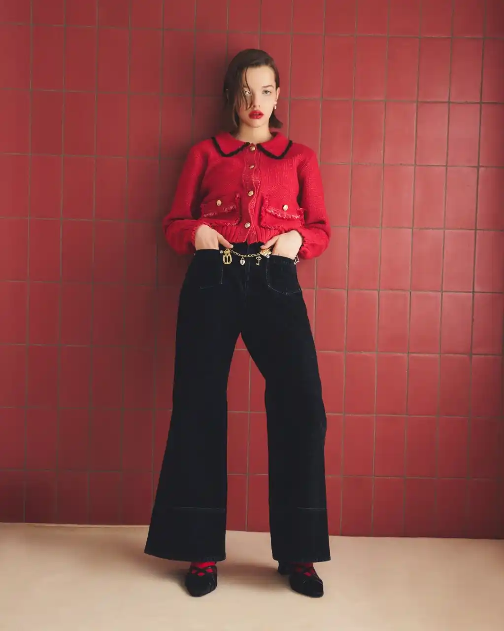彩度の高いレッドを取り入れて、華やかなワードローブを楽しんで。 |