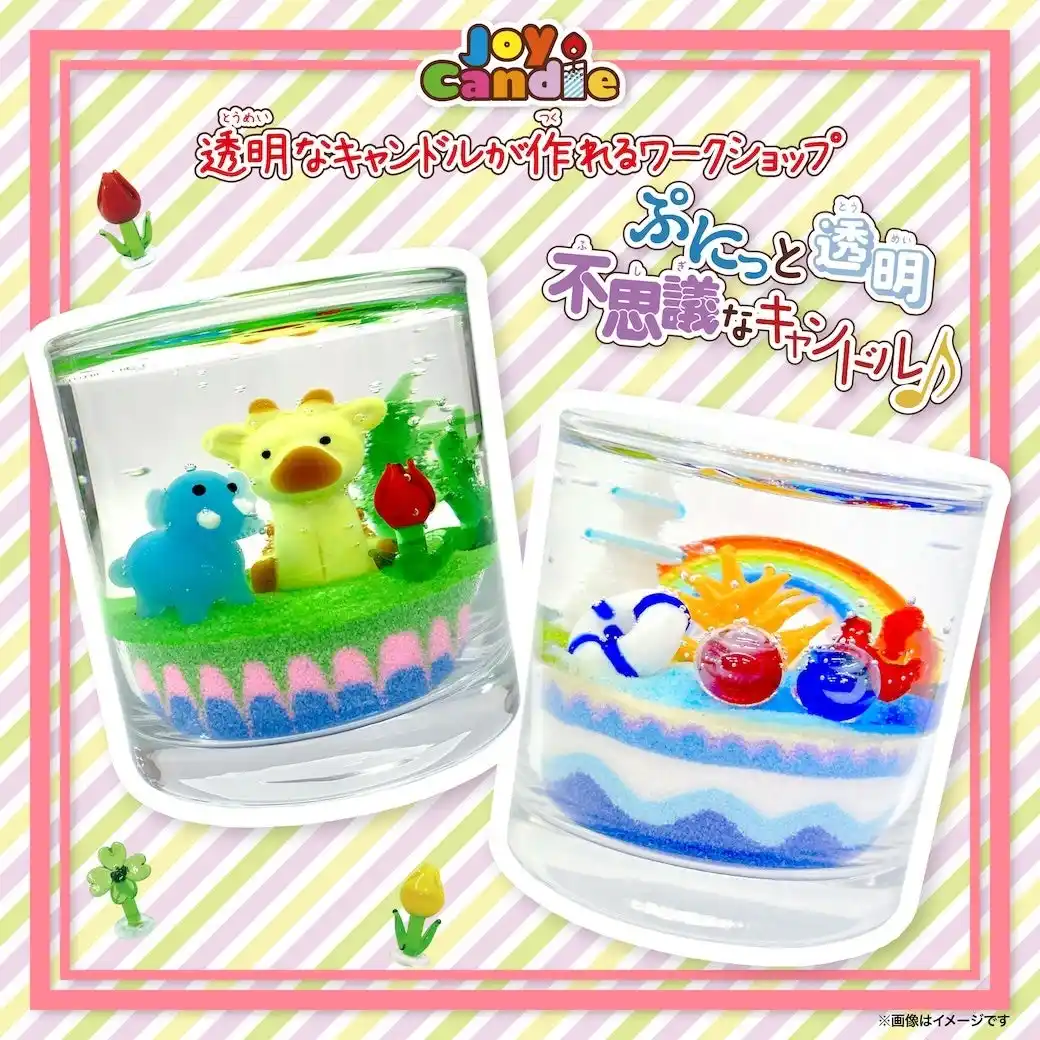 可愛い春のモチーフや動物、海の生き物などのガラス細工と組み合わせ、世界に一つだけのキャンドル作りをお楽しみください。 |