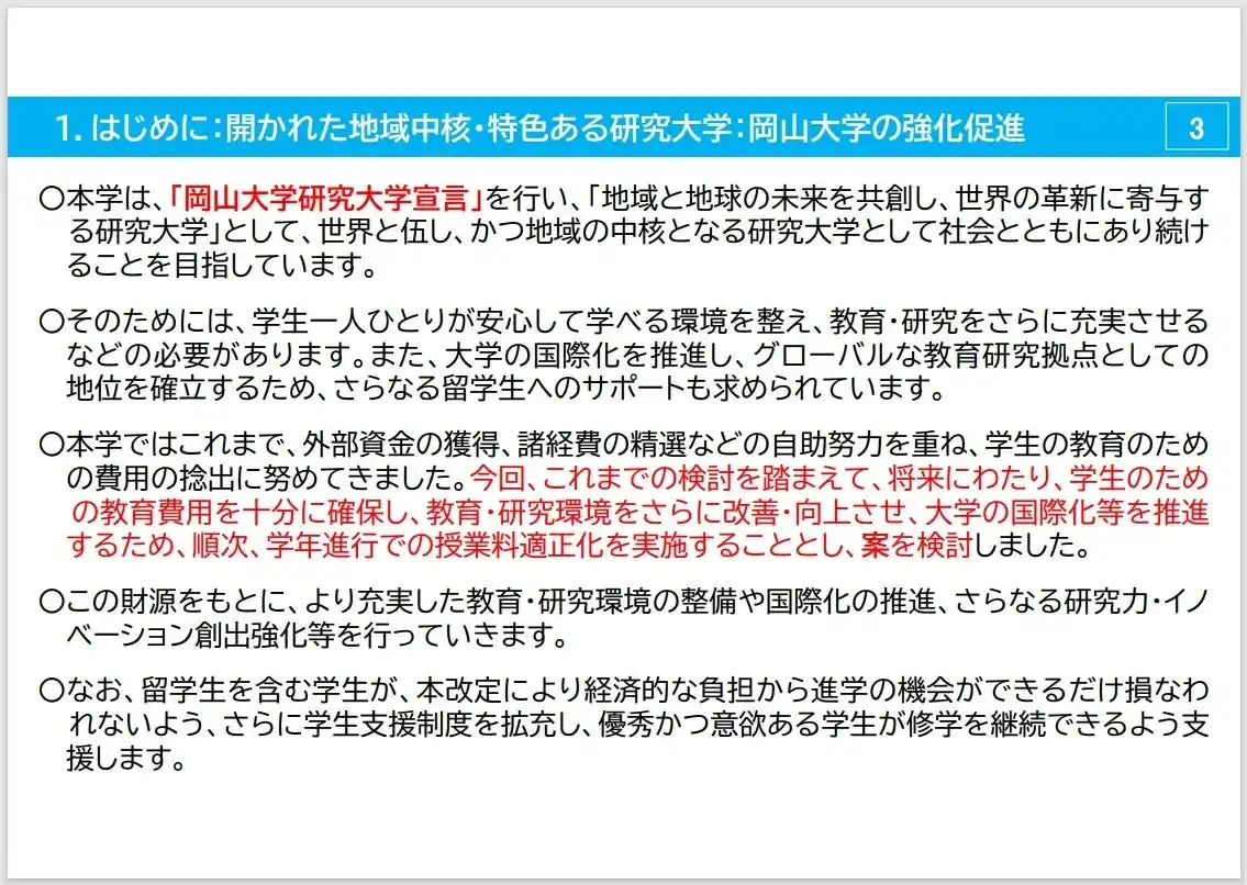 【岡山大学】2027年度入学生からの授業料適正化の方針案~今後、ステークホルダーからのご意見を参考に適正化を進めます~