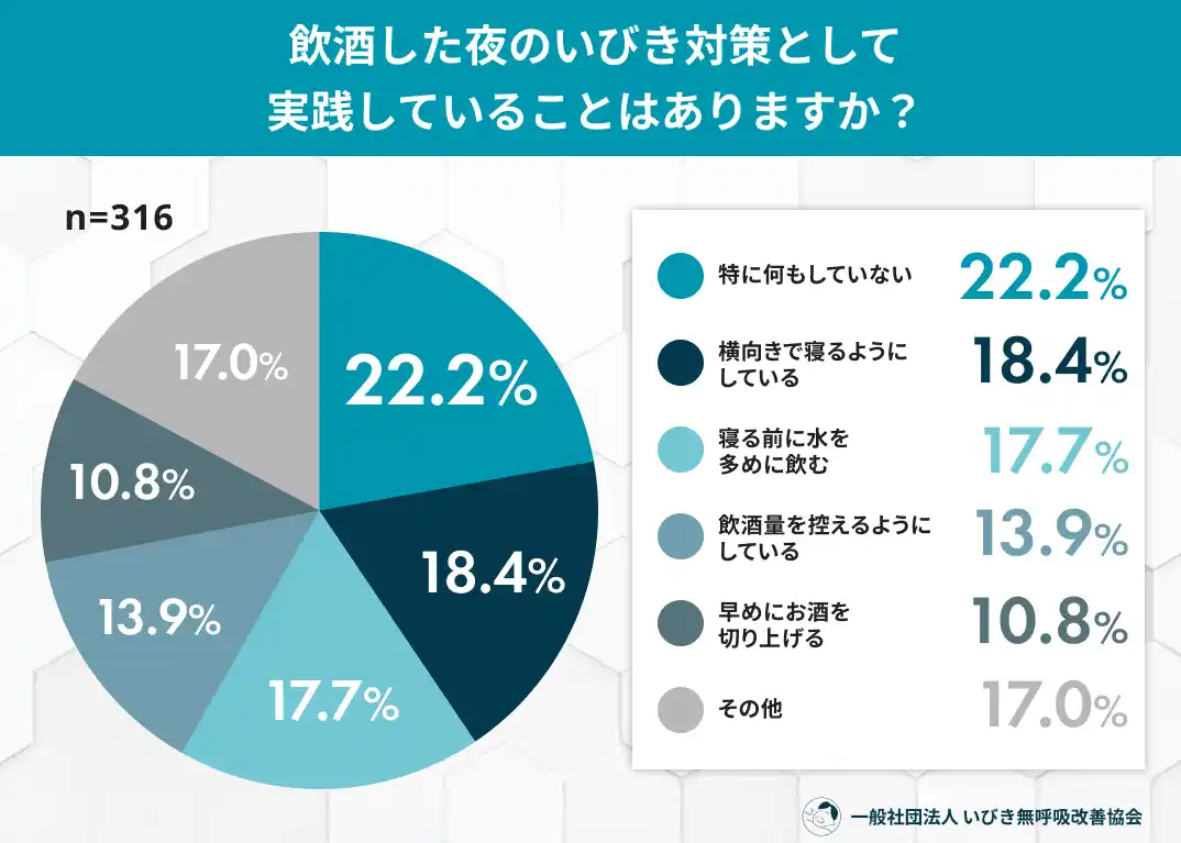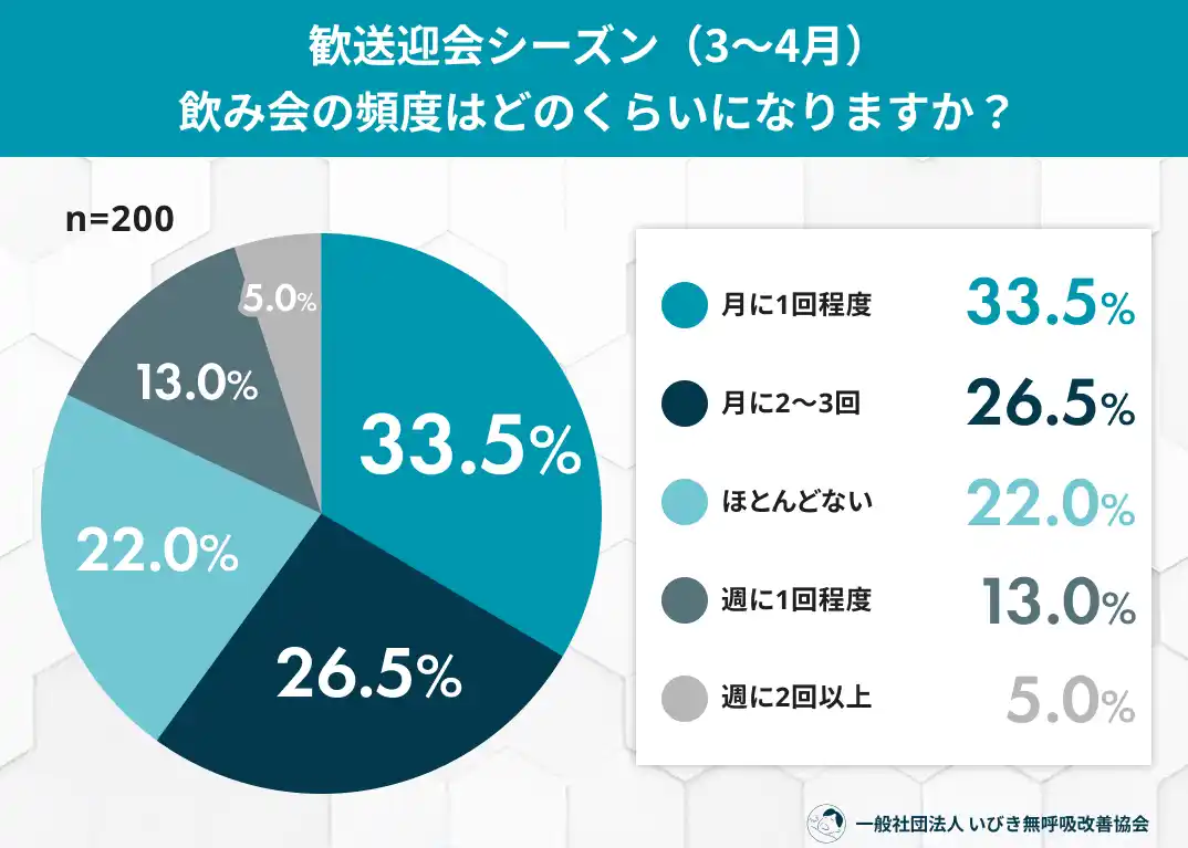 → 週1回以上の飲酒層も約2割存在し、特に春のこの時期は、継続的にいびきが悪化しやすい環境にあります。 |