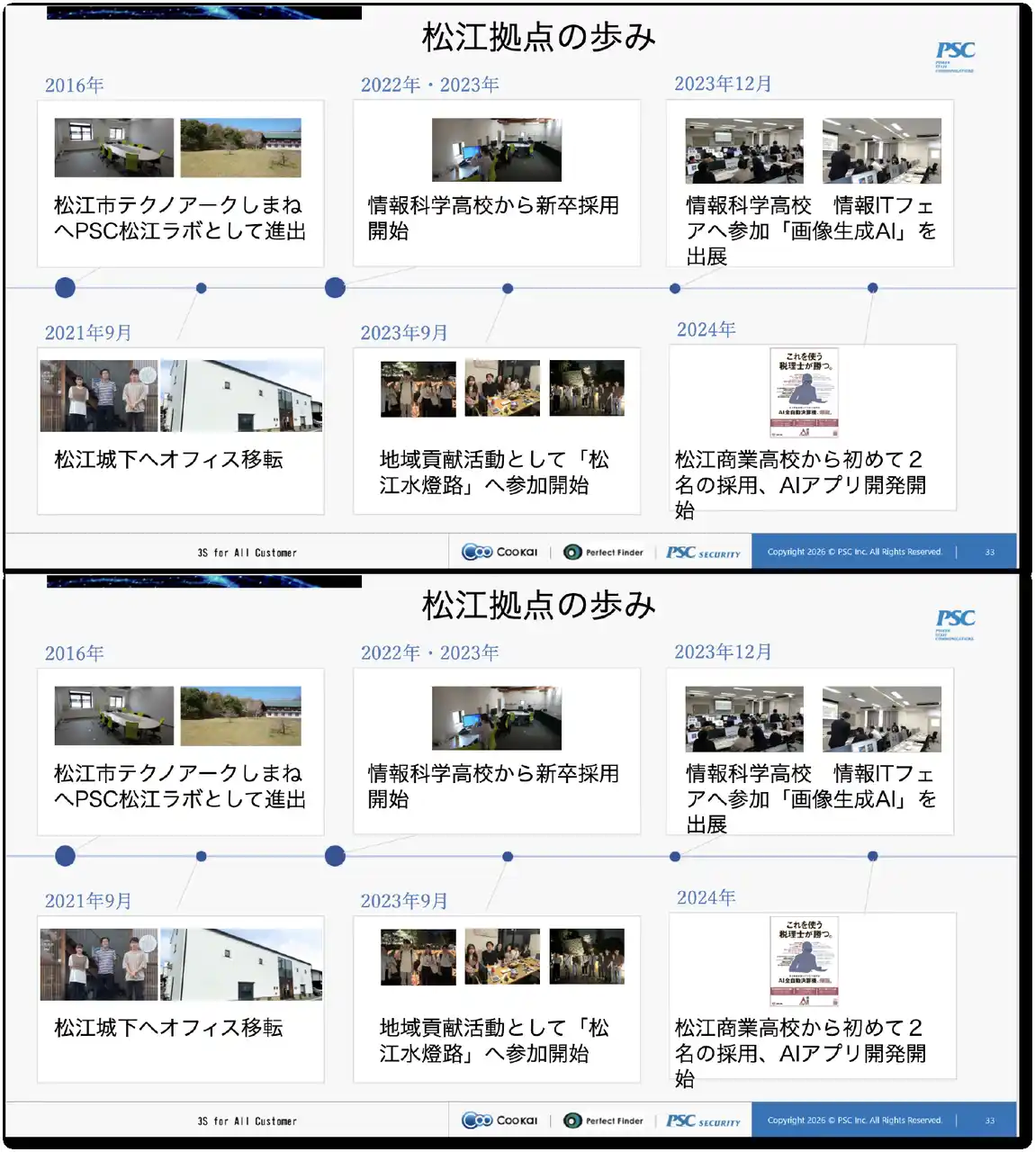 ■拠点 PSC AI Technology Center Matsue https://www.psc-inc.co.jp/about/company/office/ai_tech_matsue/ |
