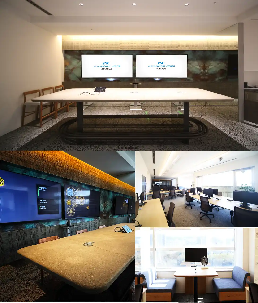 | ピーエスシー様が東京タワー目の前に芝公園オフィスを構えて以来20年、オフィス設計に携わらせて頂いております。私が内装を考える中で意識していることは、企業が目指すべき企業理念が反映され、社員に浸透するような仕掛けになっているか。そして、企業理念が訪れたお客様にも伝わるようなモノづくりを目指しています。当然、重要になってくるのが、企業理念の中枢である「代表者様の想い」。当時から鈴木社長の社員やお客様への想いは熱く、我々も必死に応え続けた20年でございます。その結実として今回の新オフィスは誕生しました。 今回手掛けさせていただいたPSC AI Technology Center Matsueでは“松江らしさ”と“最先端”の共存(コラボレーション)を意識し、島根県松江市宍道町にて採掘される砂岩石 である「来待石」を壁面やテーブルに採用。素材本来の風合いを大切にしました。また、ニュートラルでデジタル信号のようなテキスタイルデザインを採り入れ、さりげなさの中にも“効く”デザインを細部へ込めております。 | |||||||||