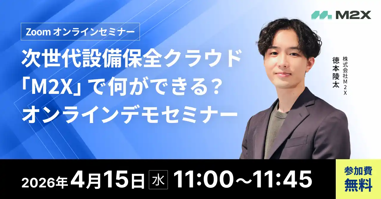 株式会社M2X(本社:東京都中央区、代表取締役:岡部晋太郎)(以下「当社」)は、「次世代設備保全クラウド「M2X」で何ができる?オンラインデモセミナー」と題した無料オンラインセミナーを開催いたします。