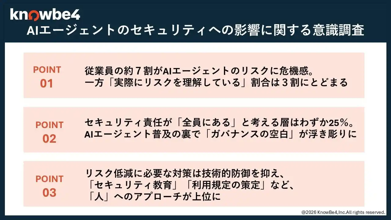 調査レポートの全文は、こちら(https://www.knowbe4.com/resources/whitepapers/impact-of-ai-agents-on-security?hs_preview=DiwXKeUE-209898710894)からご覧いただけます。