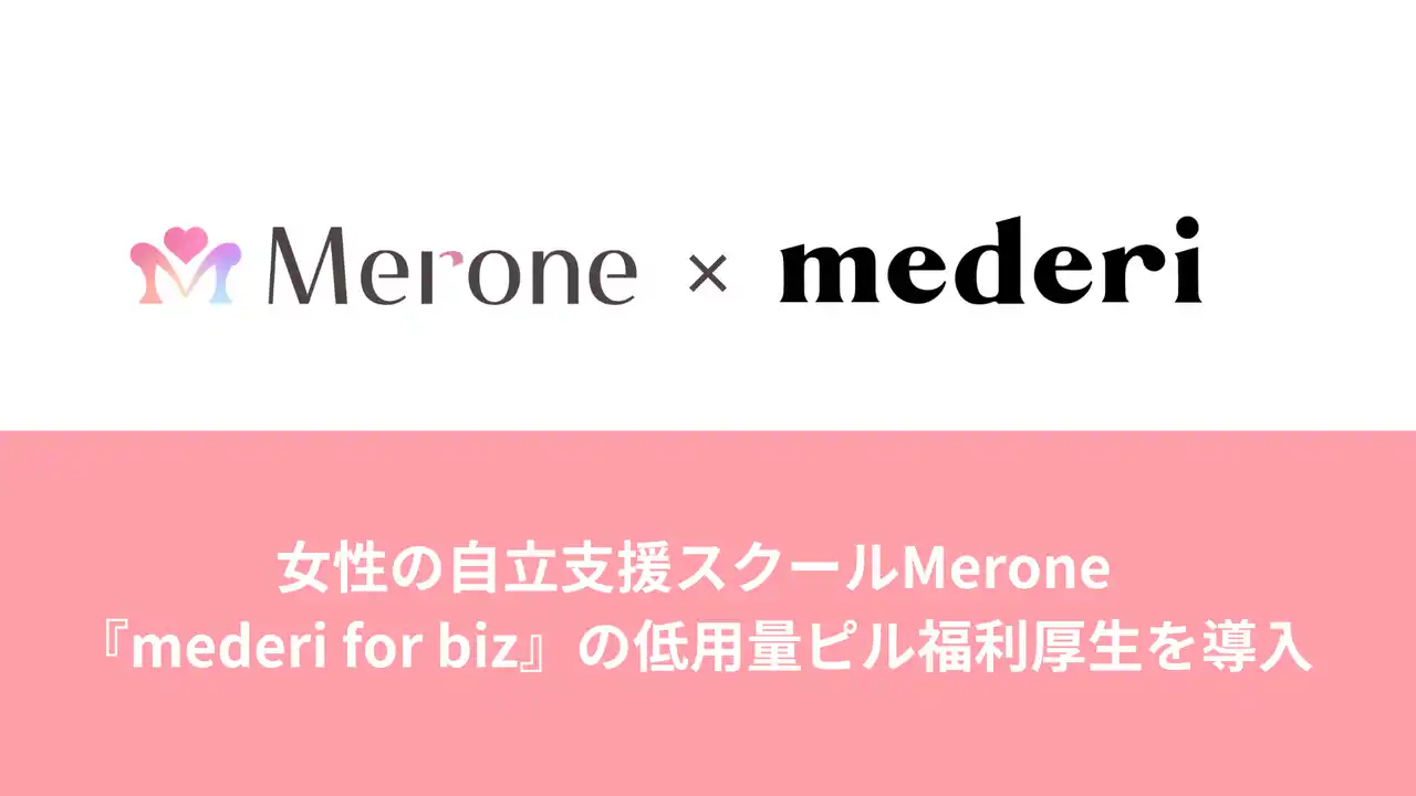 オンラインピル診療サービス『mederi Pill(メデリピル)』を提供するmederi株式会社(本社:東京都渋谷区、代表取締役 坂梨 亜里咲 以下、mederi)は、企業向け健康支援・福利厚生サービス『mederi for biz(メデリフォービズ)』を株式会社Merone(所在地:東京都渋谷区、代表取締役:森川くみこ、以下「Merone」)へ提供開始したことをお知らせします。 |