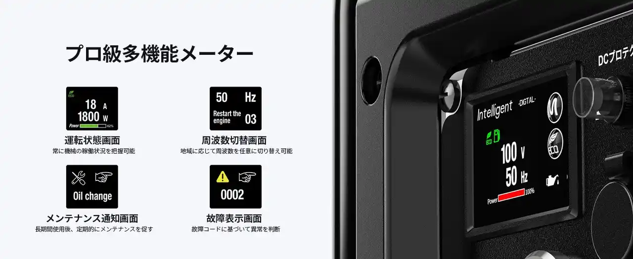 | 2、高機能デジタル表示パネル、運転状況を一目で把握 | |||||||||||||||||||