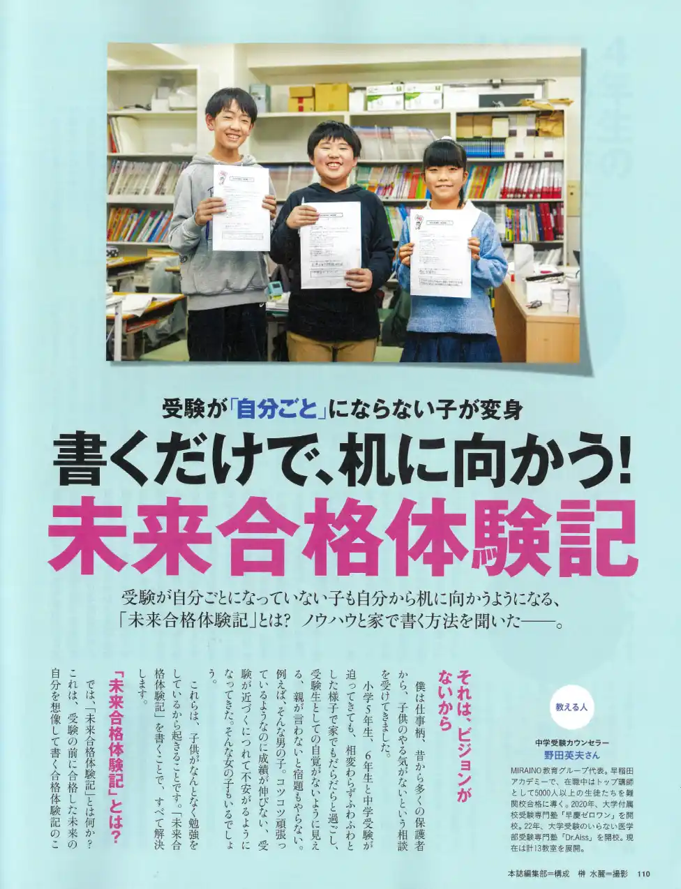 | 体験記を書いた生徒の80%が早慶付属中学に合格!「未来合格体験記(魔導の書)」「合格した未来の姿」から逆算して今を生きるマインドセットへとアップデート |
