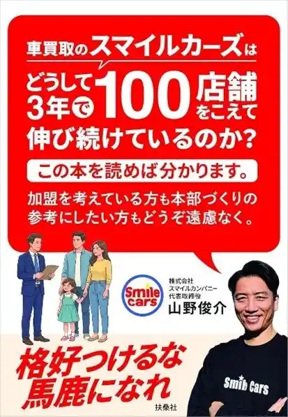 無店舗型中古車買取フランチャイズ「スマイルカーズ」が、加盟店募集開始からわずか3年で全国100店舗を突破するまでの歩みをまとめた一冊。成功事例ではなく、現場での意思決定や対話の積み重ねを中心に記録しています。本書では、加盟店オーナー3名による座談会も収録。成功談に限らず、現場で交わされた本音や意見をそのまま掲載し、「スマイルカーズ」の実像と組織の温度感を伝えています。 |