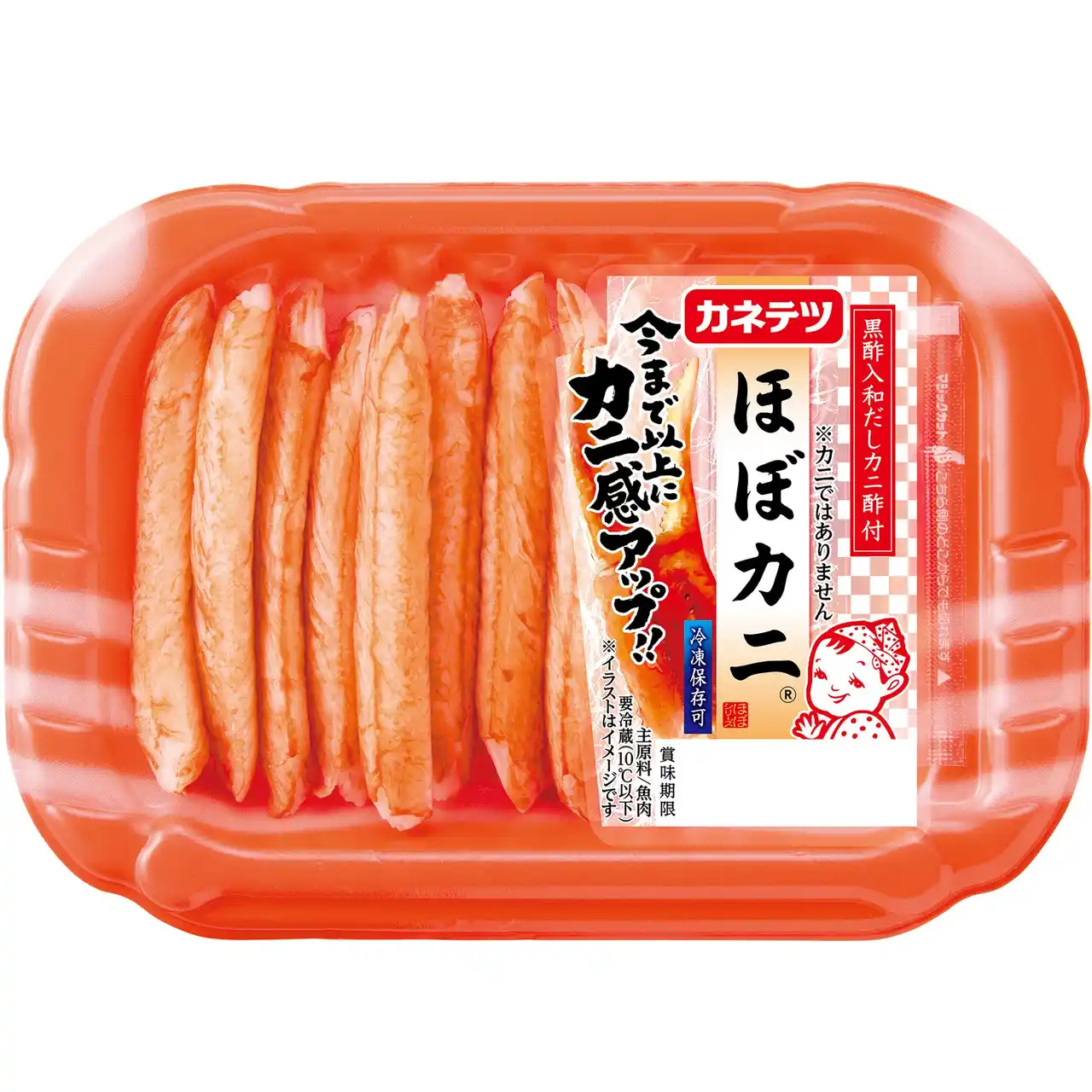| “ほぼシリーズ”は、カネテツデリカフーズ株式会社(本社:神戸市東灘区)が販売するまるで本物のような味・食感・見た目を再現した新ジャンルの練り製品です。2014年3月発売の「ほぼカニ(R)」以降、「ほぼホタテ(R)」「ほぼエビフライ(R)」「ほぼカキフライ(R)」「ほぼうなぎ(R)」「ほぼタラバガニ(TM)」「ほぼズワイ(R)」「ほぼエビ(R)」「ほぼいくら(R)」「ほぼ毛ガニ(R)」などを発売。様々なメディア媒体で取り上げられ評価をいただいています。シリーズ累計1億パックを販売し、多くのお客様へ新たな「おいしさ」と「幸せ」、ココロから笑顔になるような食卓をお届けしています。 | ||||||||||||||||
