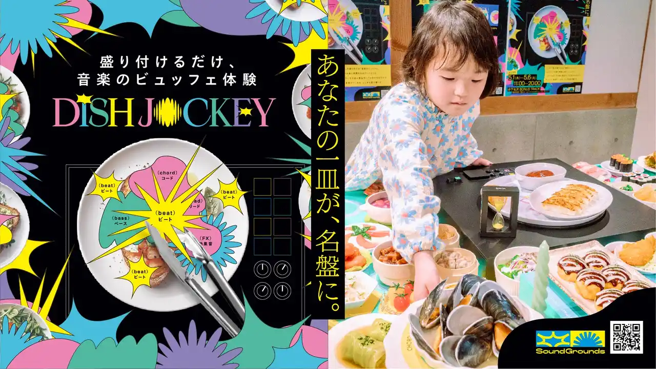 | NTTドコモ・スタジオ&ライブが展開する「DISH JOCKEY」。ビュッフェでお皿に料理をのせていくように、レコードみたいなお皿に食品サンプルをのせるだけでかっこいい音楽がつくれるふしぎな遊び場で、大多数の人が体験したことのある「ビュッフェ」と、大多数の人が体験したことのない「音楽制作」を掛け合わせる、新感覚の体験型音楽イベントです。70種類の音源から14億通りの楽曲が制作できる体験型イベントにぜひ参加して自分なりの音楽を作ってみてください。 | |||||||||||||||||||||