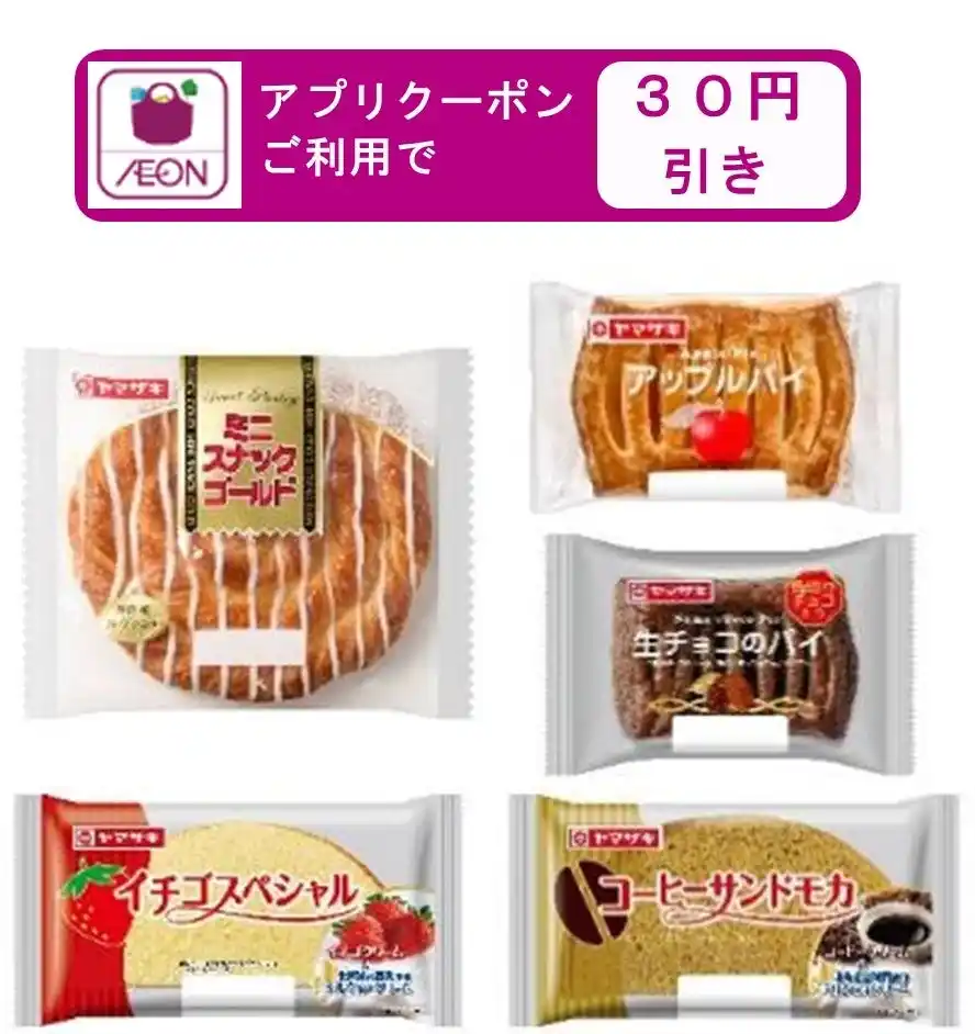 今年のフェアでは、お得にパンを選べる「お買物アプリクーポン企画」の内容をさらに充実させ、対象商品をより選びやすいラインアップにしました。期間中は「イオンお買物アプリ」でヤマザキ・パスコ・フジパン・第一パン・YKベーキングカンパニーの商品に使えるクーポンを配信します。ロングセラー商品やSNSで話題の商品などを新たに対象に加えることで、お得に楽しめる企画で展開します。 |