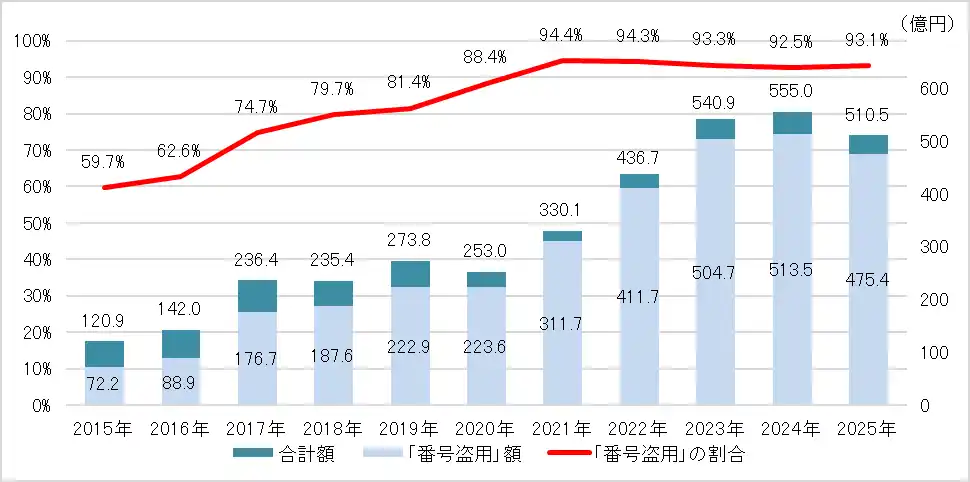 出典:フィッシング対策協議会「フィッシングレポート 2025」の数値をもとにJCCAにて加工 |