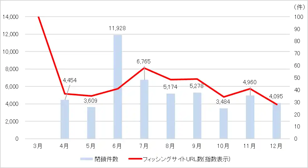 【図表3:フィッシングサイトURL数・閉鎖件数の推移】 |