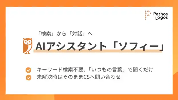 株式会社パトスロゴス(本社:東京都品川区、代表取締役CEO:牧野 正幸、以下「当社」)は、先行提供で利用者の高い評価を得たことを受け、当社のサポートサイトにAIアシスタント「ソフィー」のベータ版を搭載し、一部の導入企業向けに提供を開始したことをお知らせします。 |
