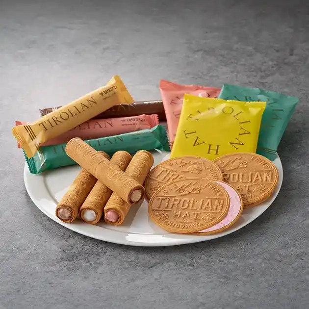 子どもの頃から親しんでいただいている、あのサクッとしたクッキーとなめらかなクリーム。ギフトとして人気の高い「ロング」と「ハット」の装いを一新。 長く親しまれてきた印象的な「3本のライン」を残しつつ、落ち着きのあるパステルカラーを採用。箱・包装紙は白地に金を基調としたクラシカルなデザインに。 贈答品としてご利用いただける上品な仕上がりへと生まれ変わりました。 |