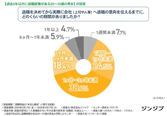退職を伝えるまでの期間は『1ヶ月~3ヶ月未満』だった!会社のどのような対応があれば退職を思い止まった? |