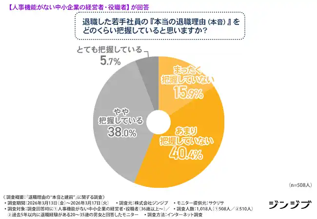人事機能がない中小企業の約6割は”本音の退職理由”を把握できていないと回答! |