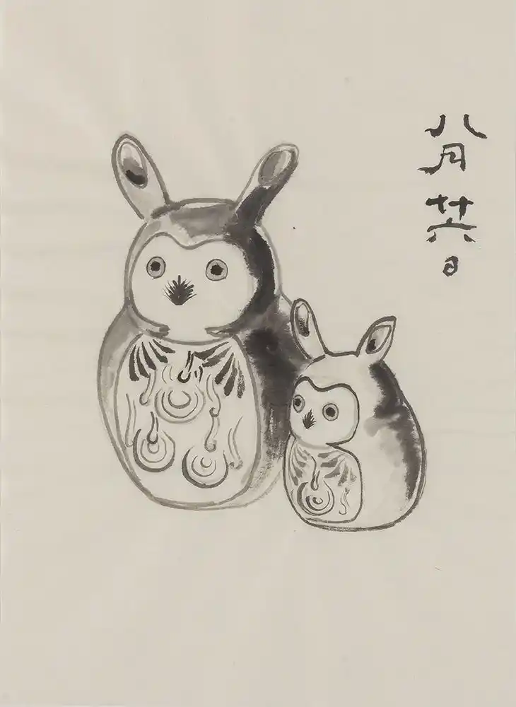 福田美蘭「日新除魔図 八月廿六日 疱瘡除け/ふくろうの日」 |